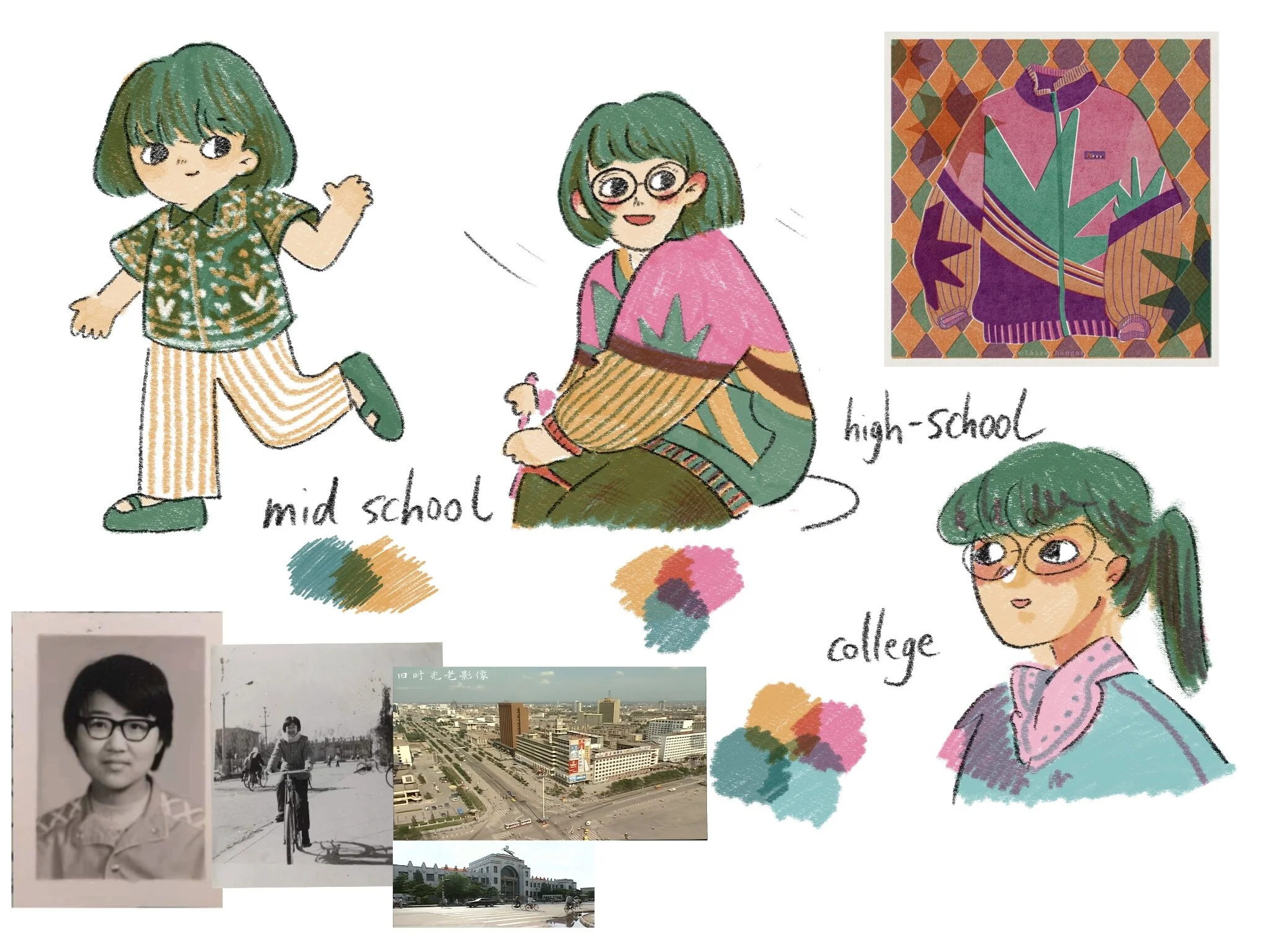 This story comes from interviewing my mom and Dad about the eighties. I found them growing up in the city and in the countryside, and their love of poetry brought them together in the city. So I turned the story into a 24-page nonfiction children’s picture book, showing the changes and contrasts between urban and rural China in the 1980s.