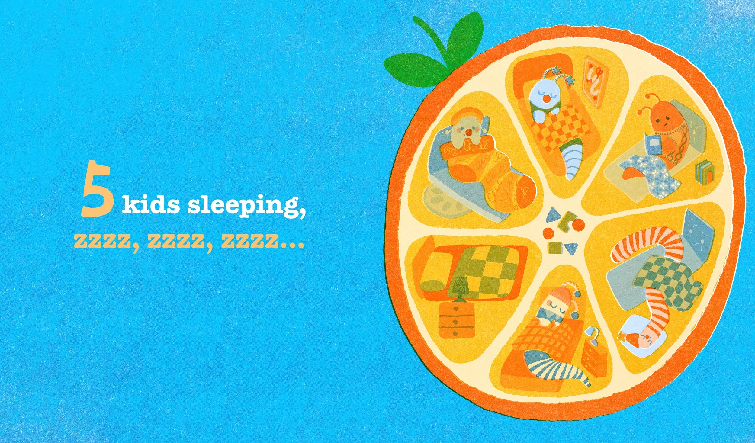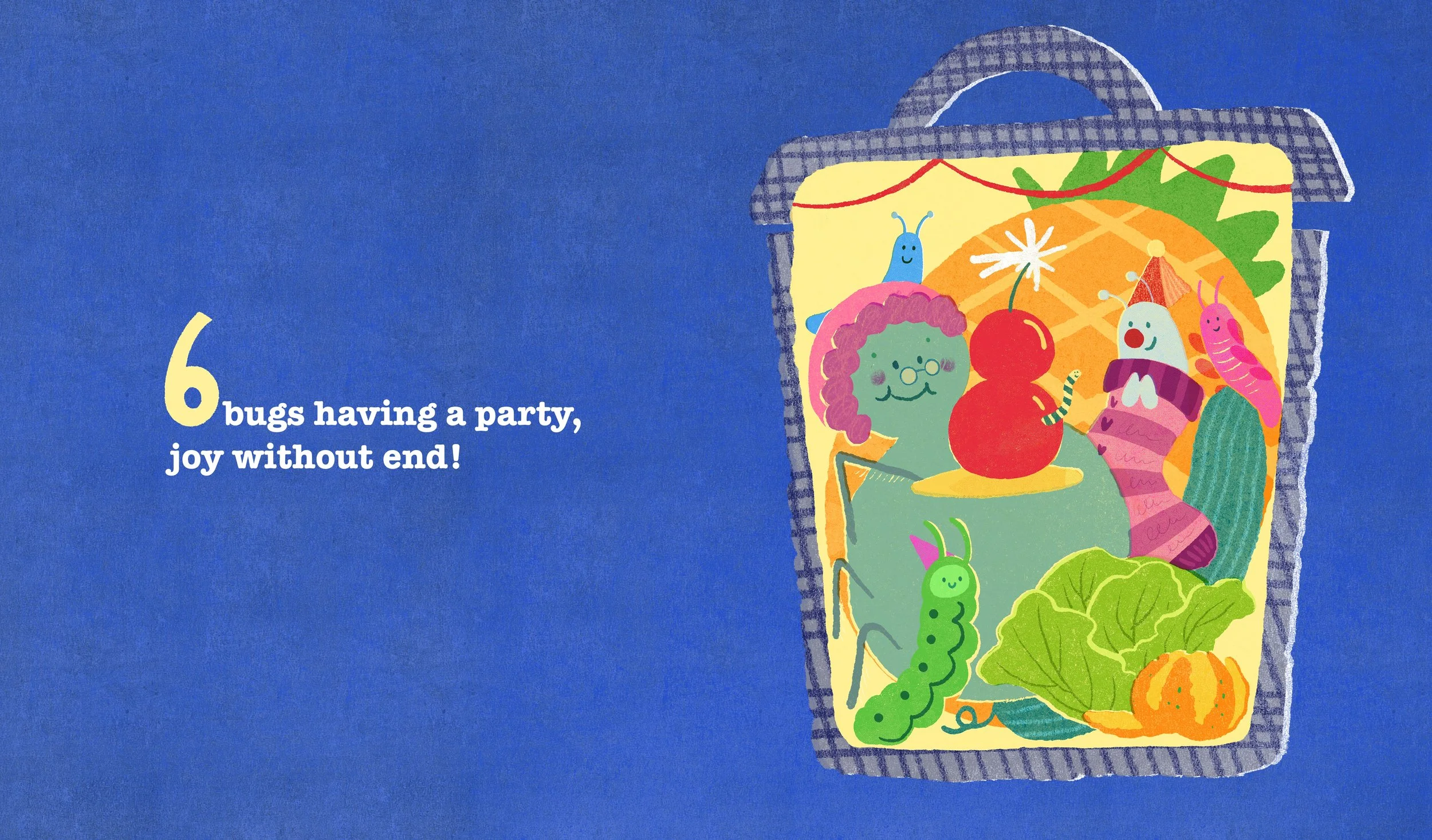 A playful counting book for children that unveils the tiny bugs living inside different fruits with each page turn. The artwork, crafted through digital painting, mimics the texture of Riso printing, enhancing the visual experience while ensuring top-notch print quality.
